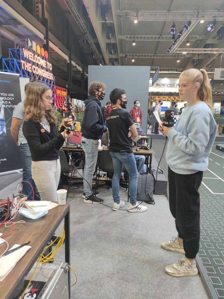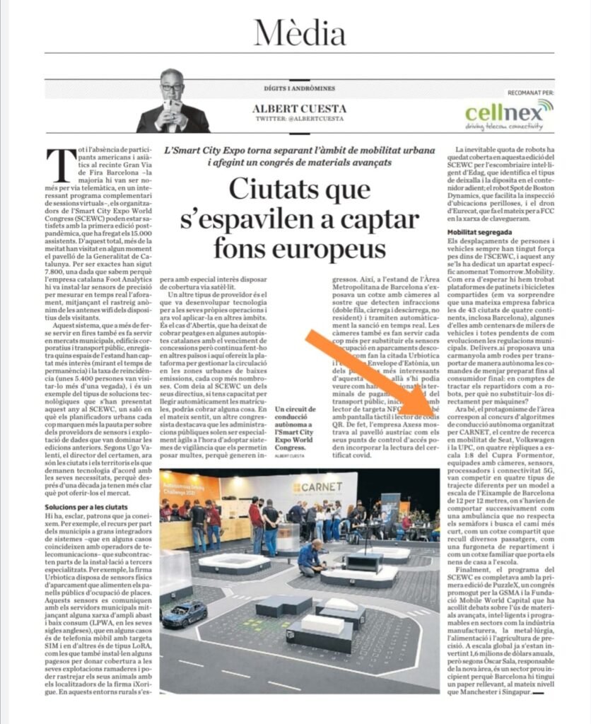 For the event execution, we elaborated a very dynamic agenda, including not only the competition between the students but also inviting 11 renowned speakers on our stage (CARNET, SEAT, S.A., Eurecat – Centro Tecnológico de Catalunya, Capgemini Automotive; PTV Group, IDIADA AUTOMOTIVE TECHNOLOGY, S.A., Albertis CORP & Vodafone); we had a special guest, who moved the car only with his eyes and mouth. The track was also open for a test drive during the three days of the event. In the meantime, future journalists from Escola Thau Barcelona interviewed speakers and participants and the team of TV3 Group (the official Catalan TV) streamed our event online.