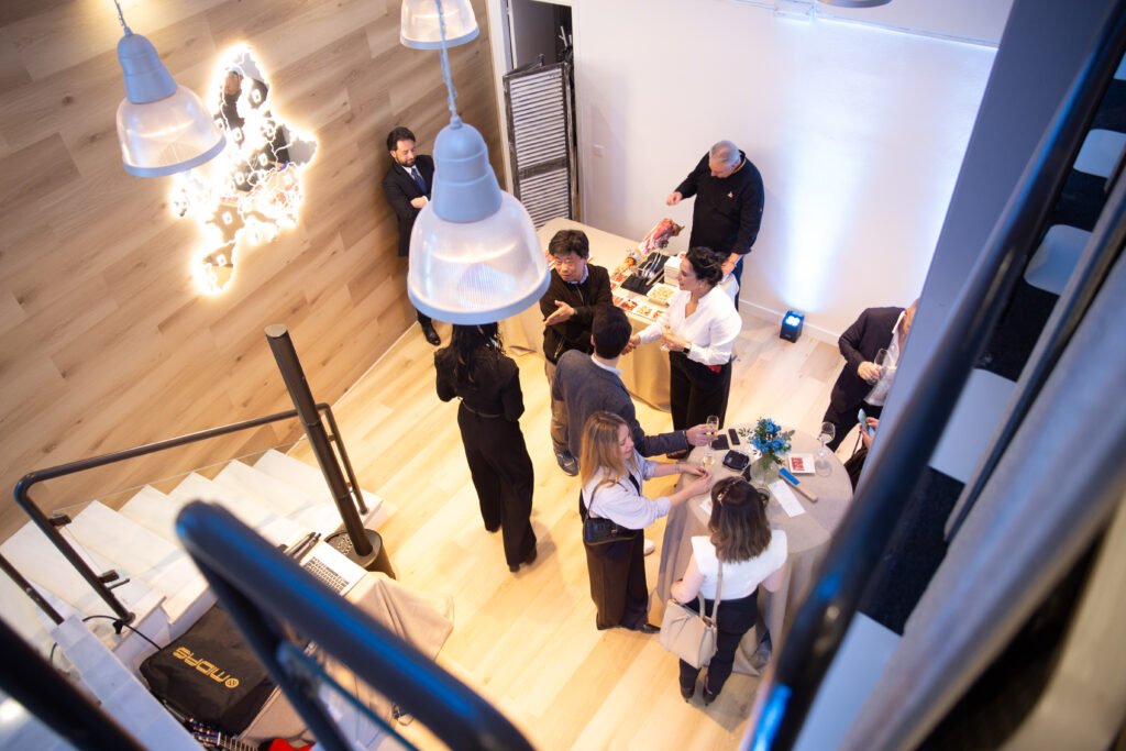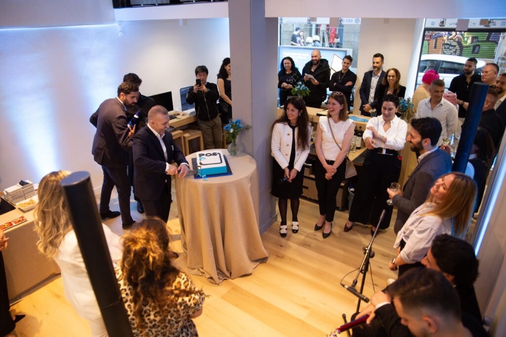 To ceremoniously mark the commencement of this momentous occasion, the CEO of the company gracefully cut the symbolic blue ribbon, inviting guests to raise a toast with the finest Cava and indulge in a delectable piece of branded cake.